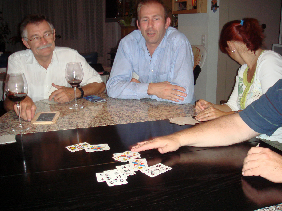 | Teilnehmer: Pascal und Andreas Meyer mit "Kind und Kegel", Romy, Peter und Nicolas Voigt, Denise, Elias, Hansjürg, Roli und natürlich die Gastgeber Marlène und Peter Durrer | |