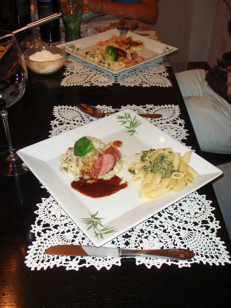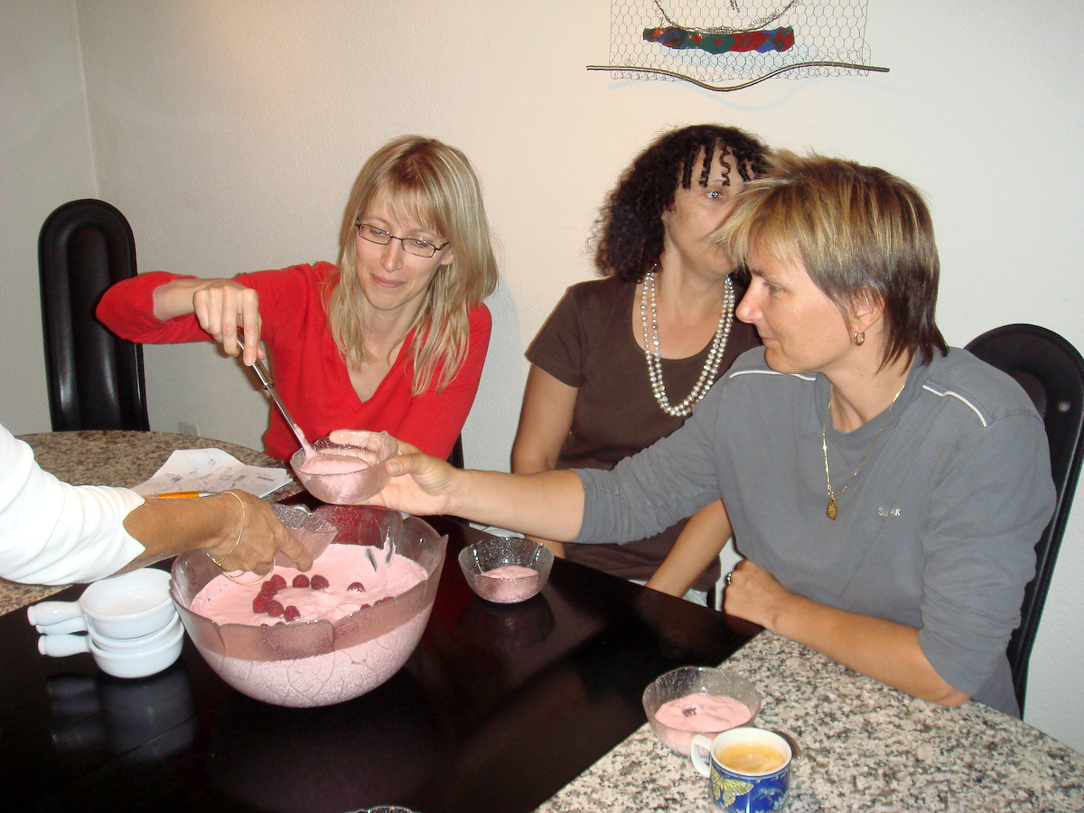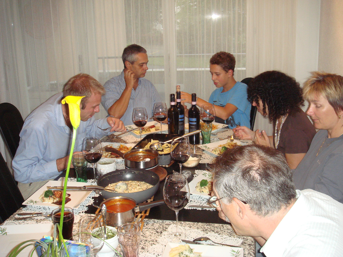 Eigentlich wollten wir uns sportlich betätigen (Velotour) und anschliessend grillieren, doch das Wetter liess es nicht zu (Regen und ca. 15 Grad). Vielleicht waren einige auch froh darüber, blieb doch so die ganze Arbeit bei Peter Durrer Der zeigte uns wieder einmal seine Kochkünste, indem er uns feine Risotto und Pasta auf den Tisch zauberte. Anschliessend spielten alle "Molotow", bei dem es machmal lauter als beim Tischtennis zuging (schau Dir das Video an)! Zum Abschluss gab es noch ein feines Dessert von Romy ... ... und zur Verdauung einen entspannten Ausklang. Da Peter natürlich wieder viel zu viel gekocht hatte, essen die Durrers jetzt noch eine ganze Woche Pasta. En Guete! Reporter: Elias |