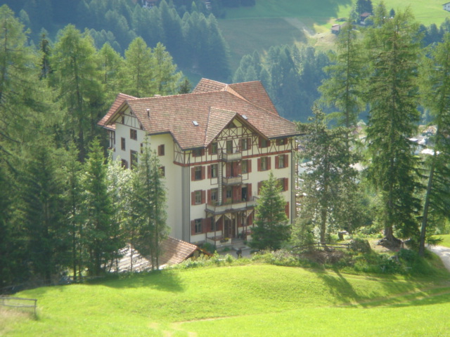 Unsere Unterkunft, das Waldhotel, befindet sich bei Pradaschier, Churwalden. Der alte imposante Bau thront in einer Lichtung mit schöner Aussicht ins Tal.